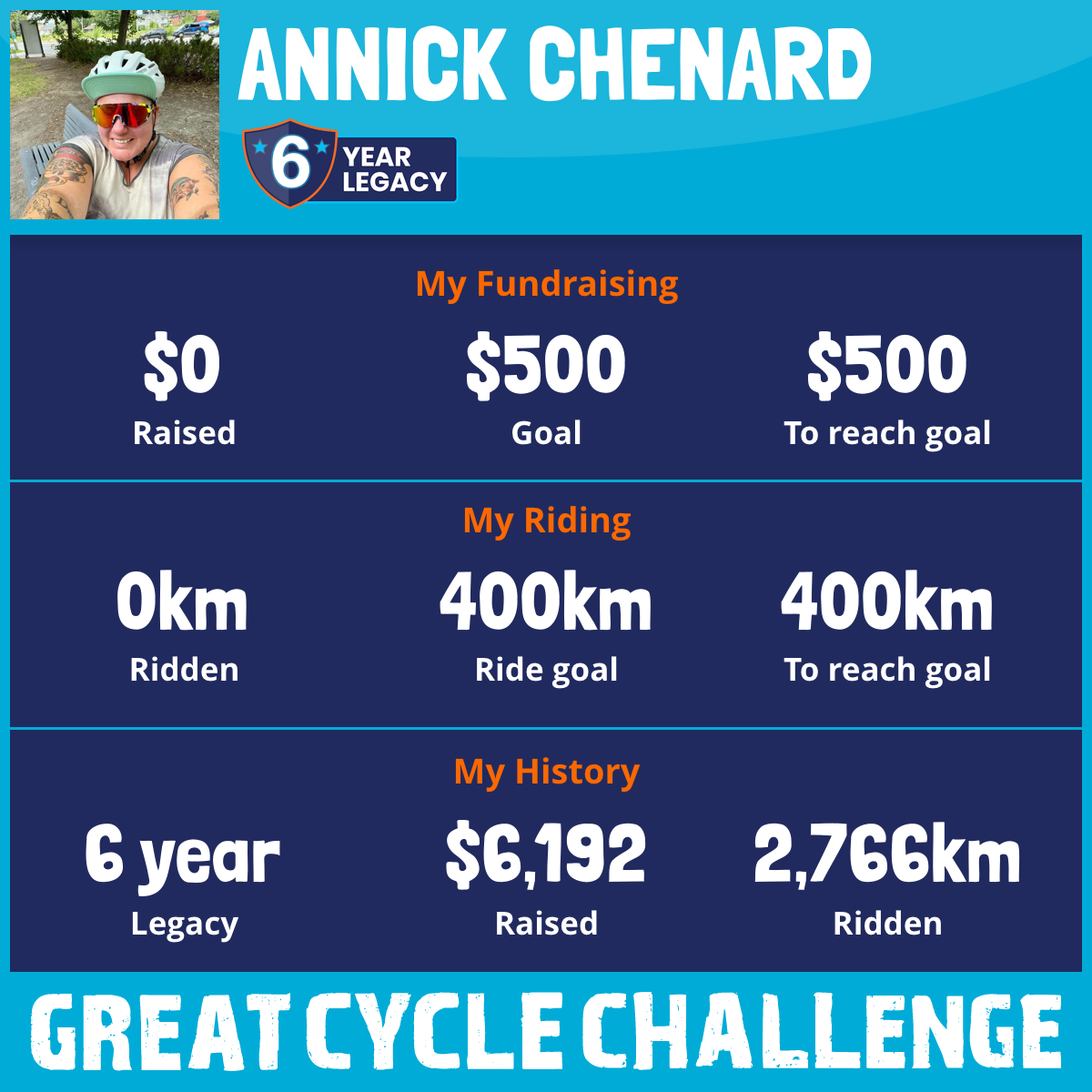 This will be the sixth year where, in August, I take part in the Great Cycle Challenge to fight kids' cancer with two goals in mind: raise a shitload of money and awareness to help fight childhood cancer AND get my arse off the couch and on the road! The challenge always yields aches, pains and sore lady parts, but it got me discovering my city, pushing myself a little further every day and contributing to a cause I really care about!