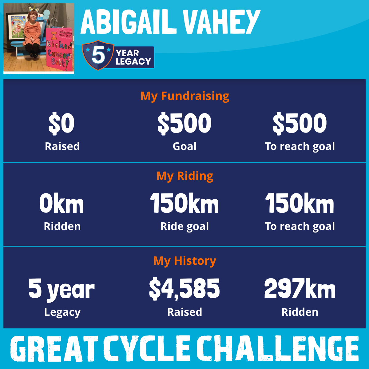So I am raising funds through my challenge to help these kids and support SickKids Foundation to allow them to continue their work in developing treatments and finding a cure for childhood cancer. Last year, Abby's Army raised over $10,000 and this year, with your help, we would love to raise money.