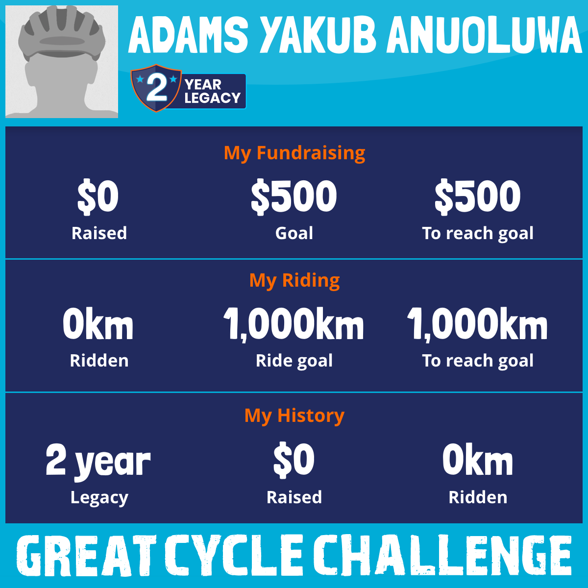 I've Ridden 0.0 km My goal is 1,000 km