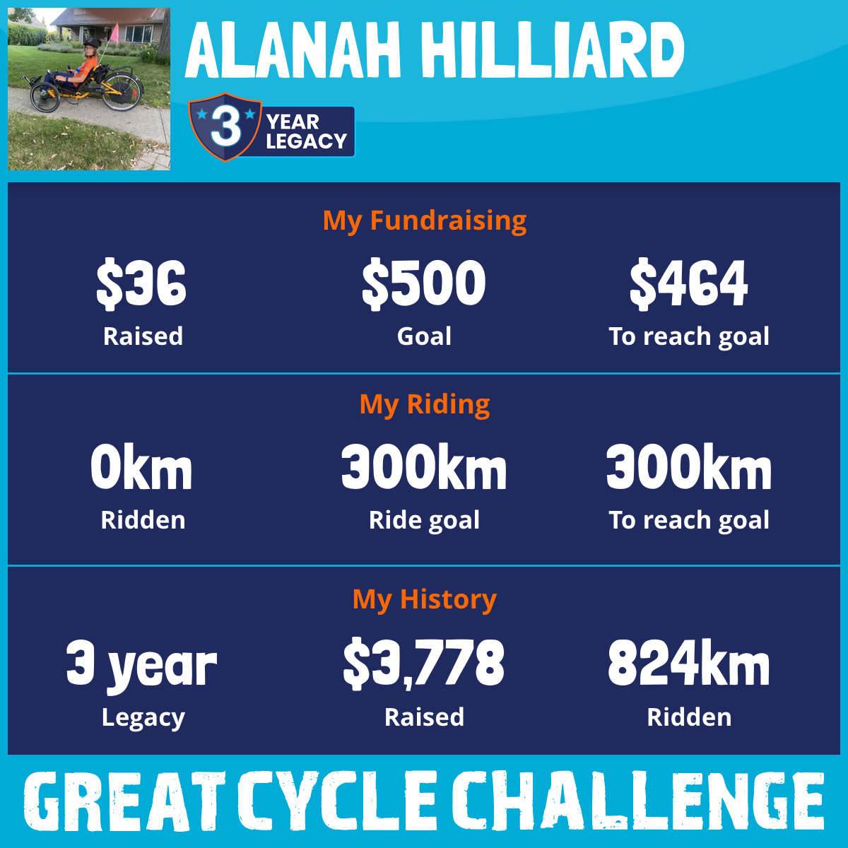 300 km Ridden$3,631 Raised2025