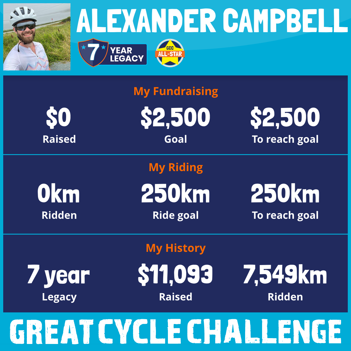 I am riding 250 km in memory of Howard Campbell. Please sponsor me and support my challenge to fight kids' cancer and save little lives.