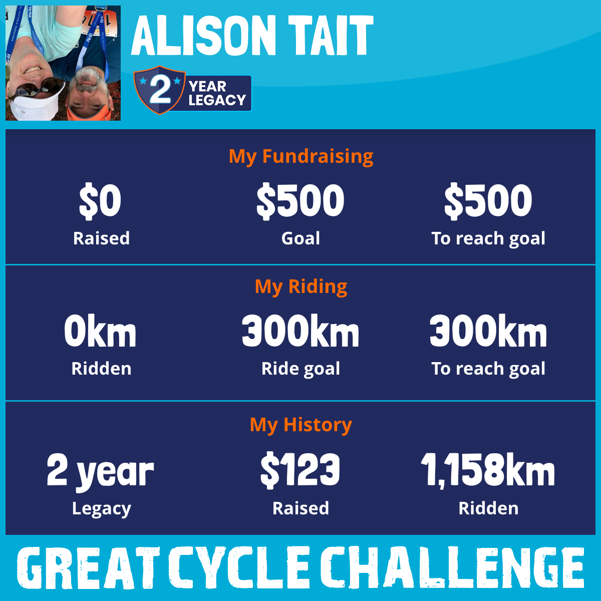 1,158 km Ridden$123 Raised2024