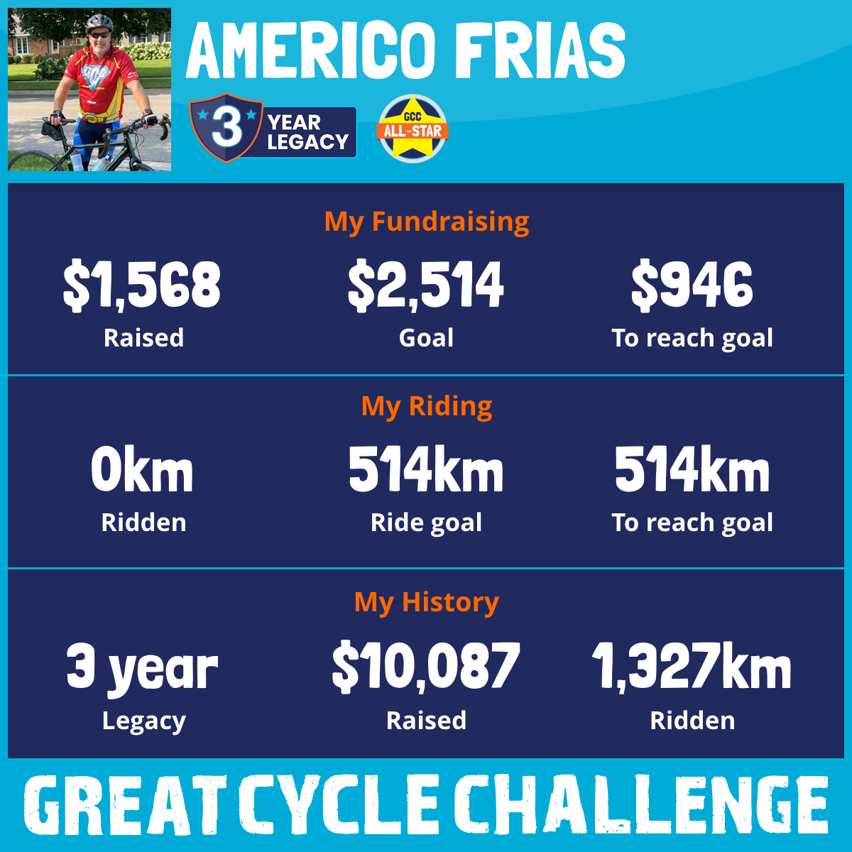 “Thanks for continuing your efforts to help the fight against cancer. Good luck and safe cycling!”