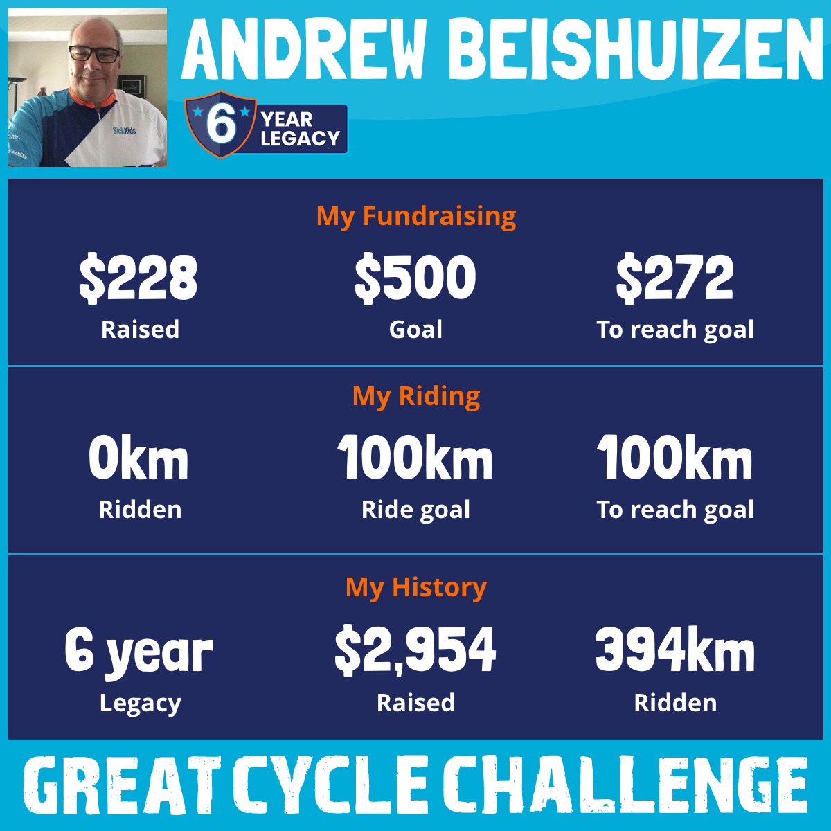 150 km Ridden$1,650 Raised2020