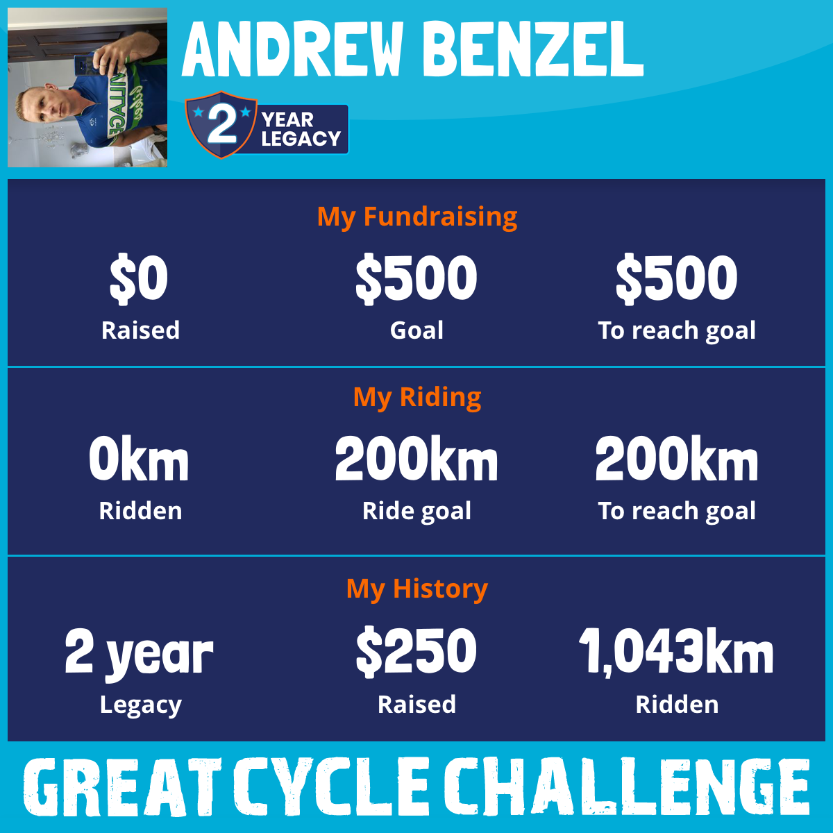 1,043 km Ridden$250 Raised2021