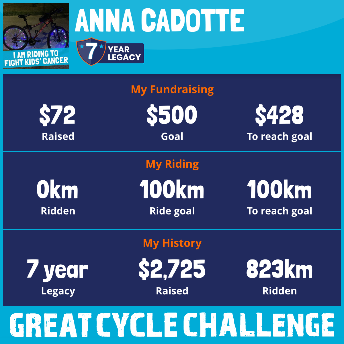 This August, I am taking part in the Great Cycle Challenge to fight kids' cancer!
