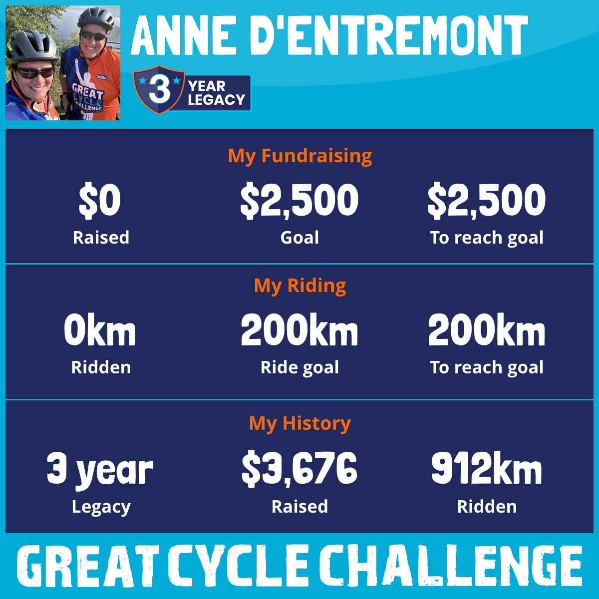 376 km Ridden$2,064 Raised2023