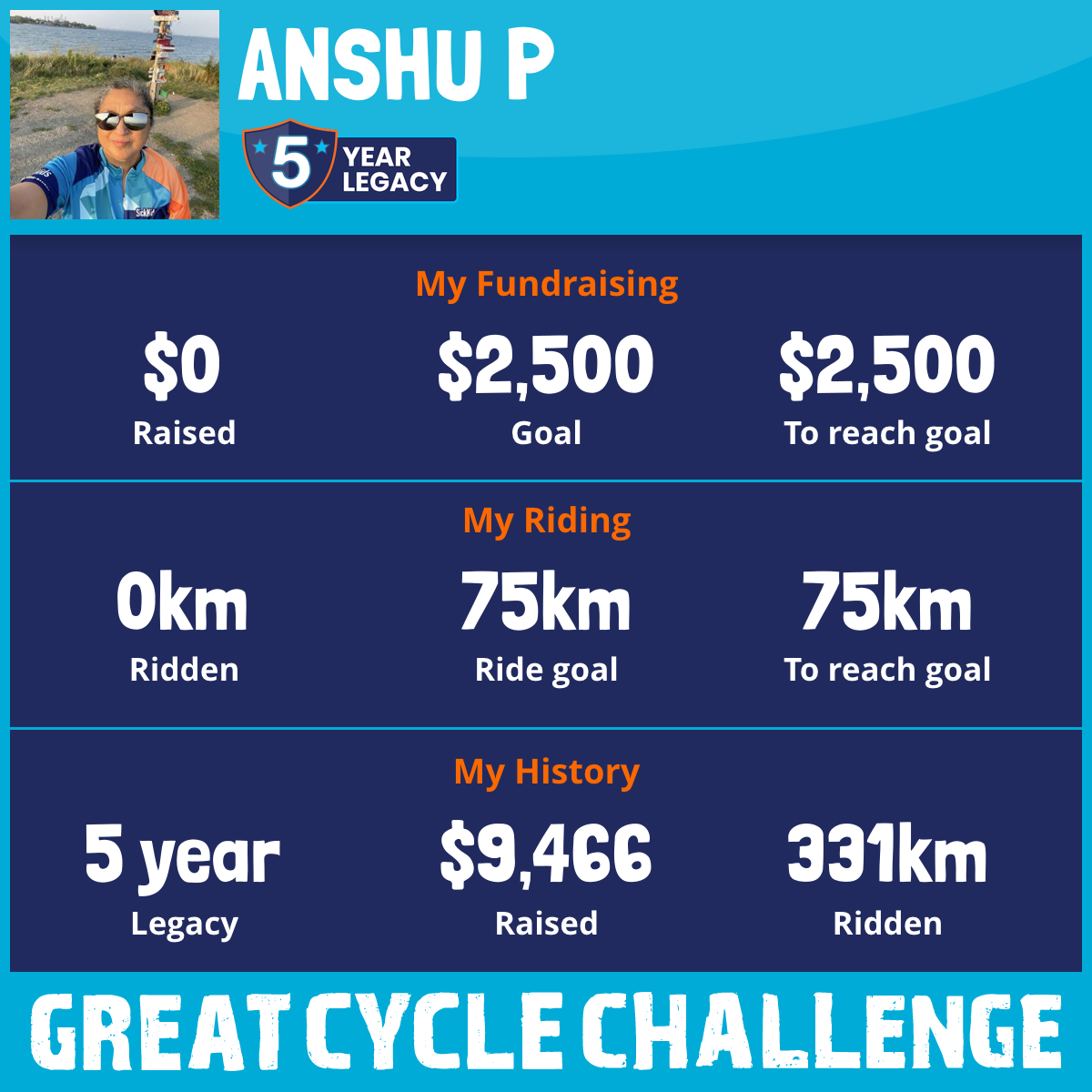 This marks my fourth year riding 100 km in the Great Cycle Challenge to fight kids' cancer.