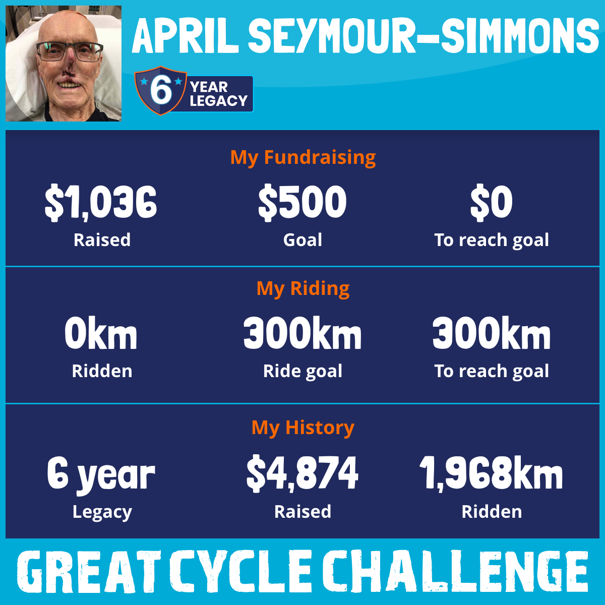 I am riding 300 km in memory of my dad, Ronald Stanley Seymour. Please sponsor me and support my challenge to fight kids' cancer and save little lives.