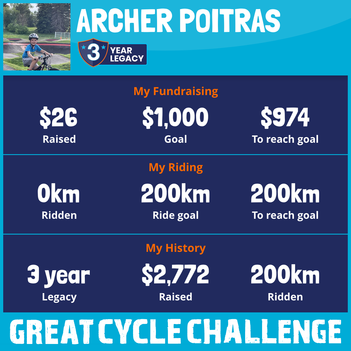 90 km Ridden$1,306 Raised2025