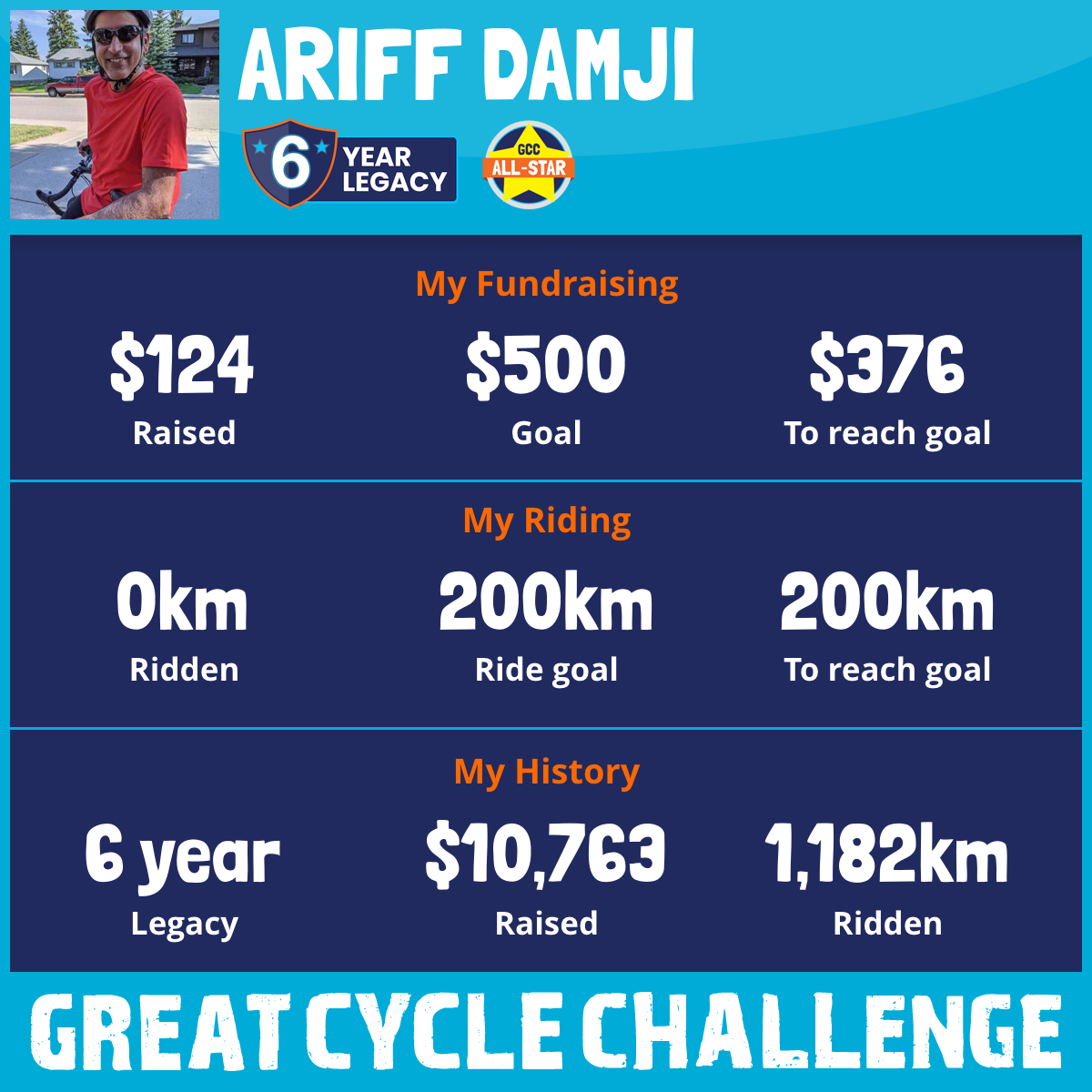 207 km Ridden$1,824 Raised2022
