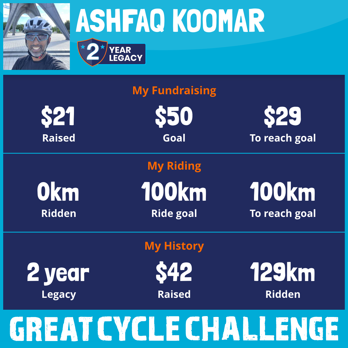 129 km Ridden$21 Raised2024