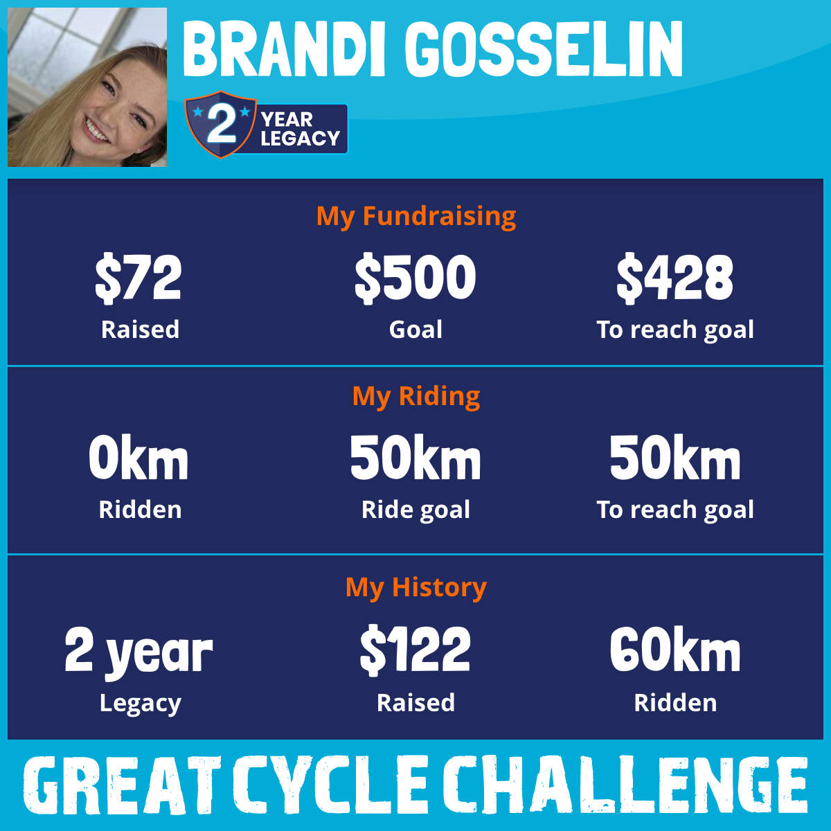 60 km Ridden$50 Raised2023