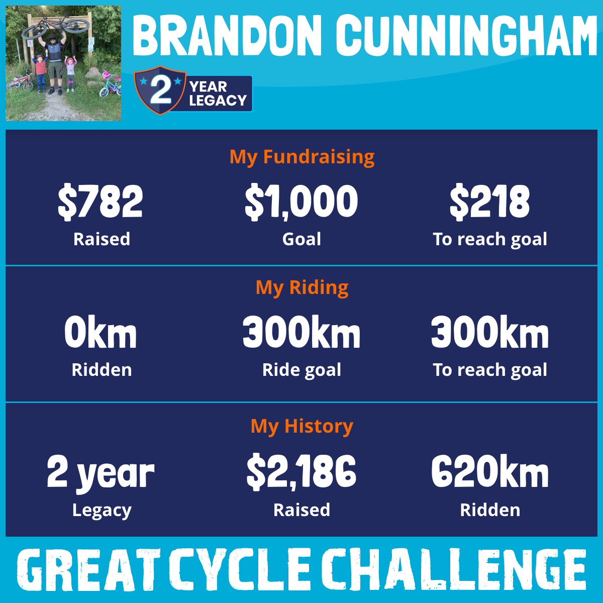 620 km Ridden$1,404 Raised2023