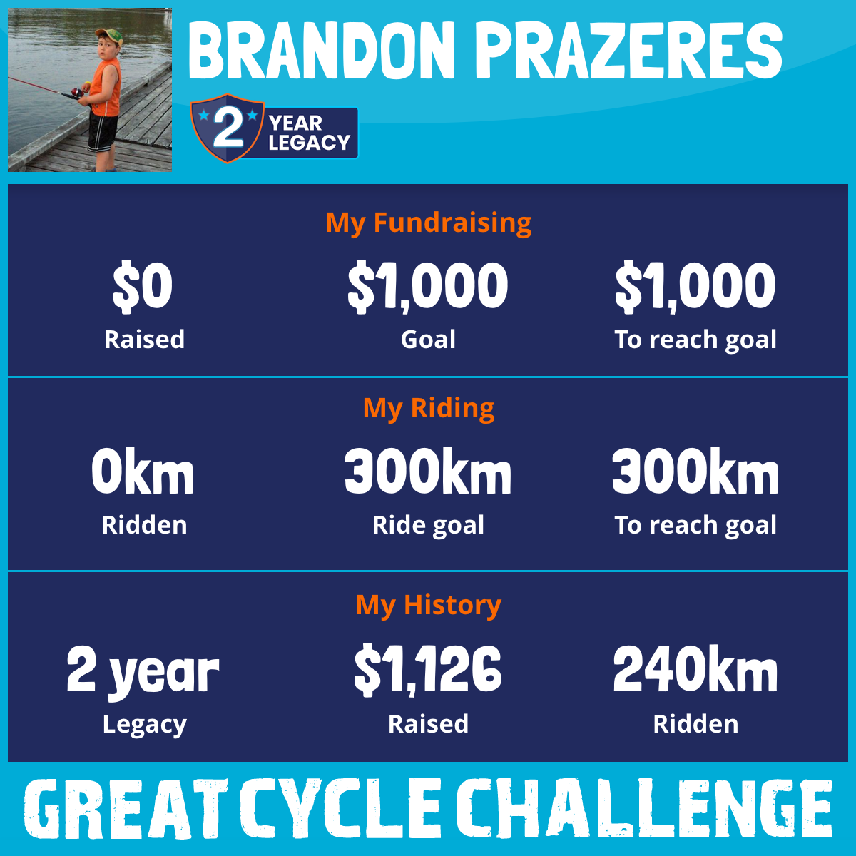 I am riding 300 km in memory of Scott. Please sponsor me and support my challenge to fight kids' cancer and save little lives.