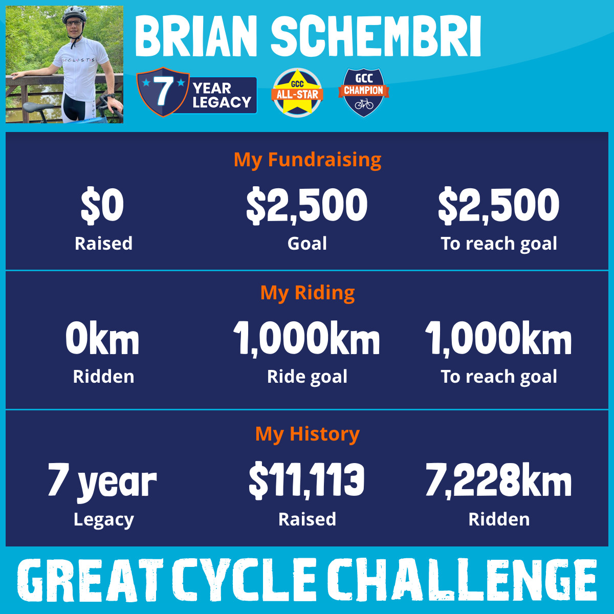 1,458 km Ridden$2,731 Raised2021