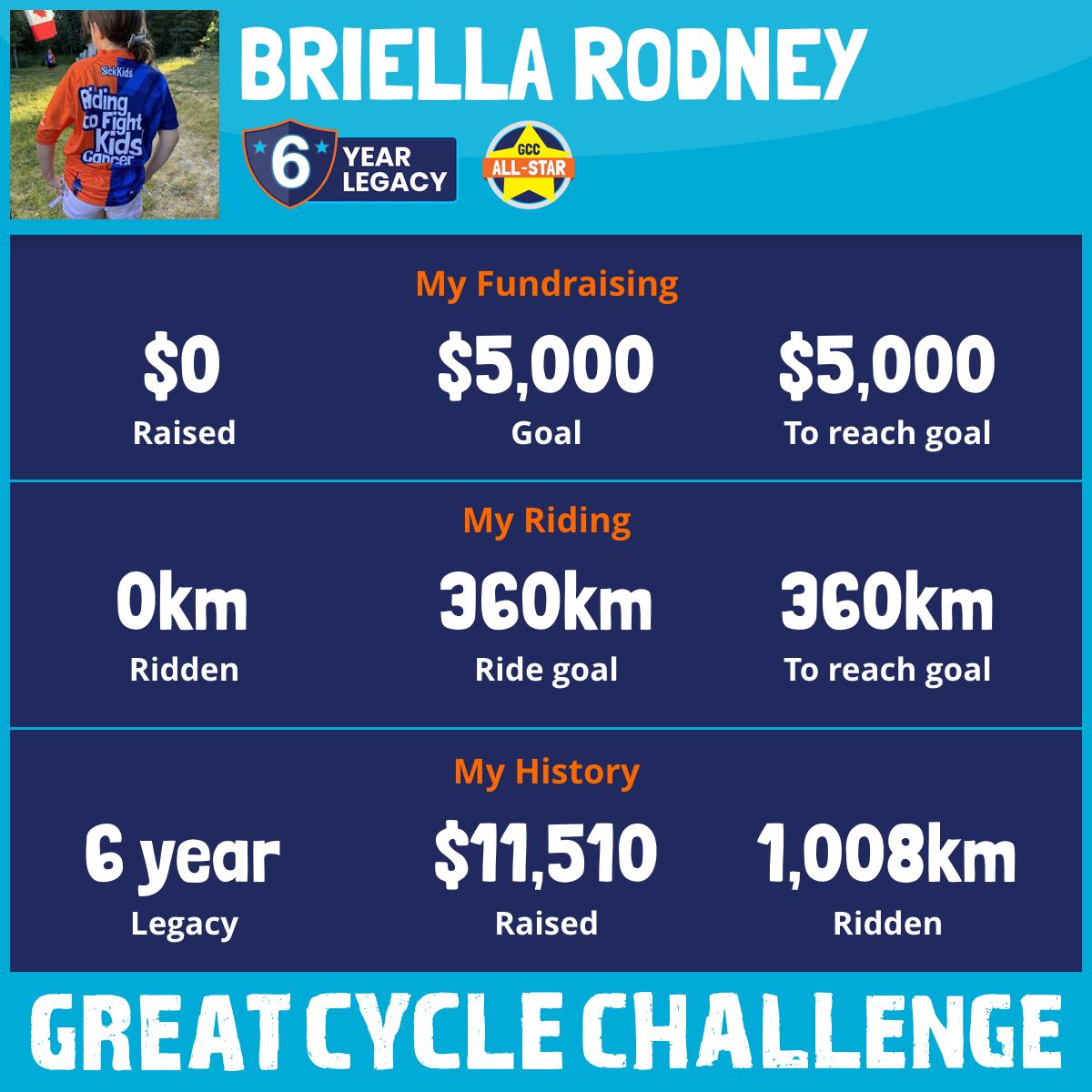 401 km Ridden$5,710 Raised2025
