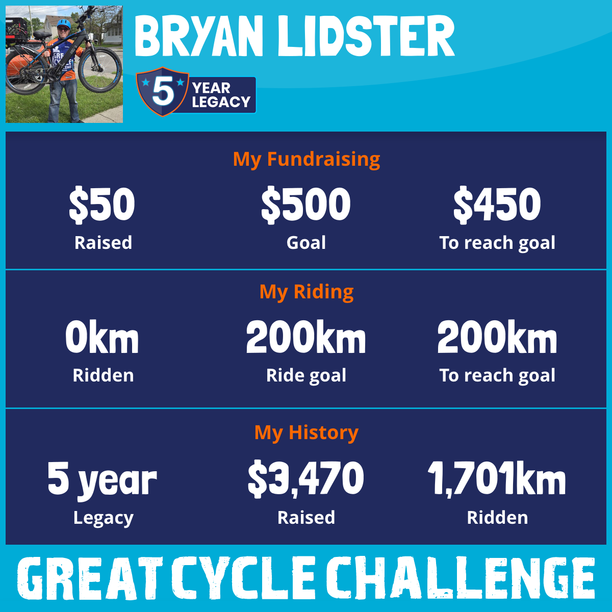 This August, I am taking part in the Great Cycle Challenge to fight kids' cancer! Why? Because right now, over 1,700 children are diagnosed with cancer every year, and it's the biggest killer of children from disease in Canada. Kids should be living life, not fighting for it.So I am raising funds through my challenge to help these kids and support SickKids Foundation to allow them to continue their work in developing treatments and finding a cure for childhood cancer. Please support me by making a donation to give these kids the brighter futures they deserve. Your support will change little lives. Thank you for helping fight Kid's Cancer with us all.