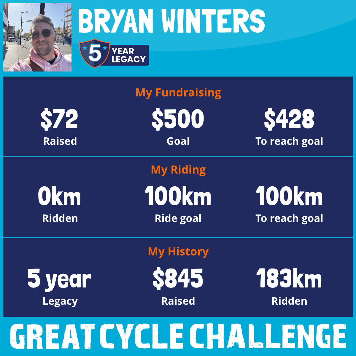 I am riding 100 km in memory of Moose. Please sponsor me and support my challenge to fight kids' cancer and save little lives.