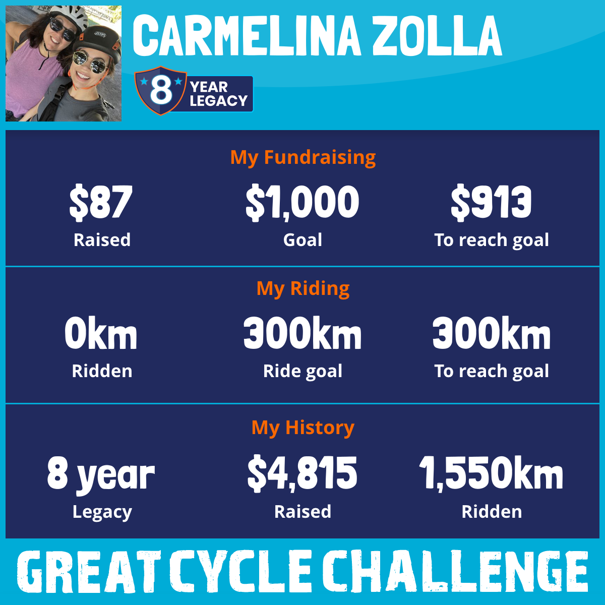 August 2025 - My goal in August is to ride in the Great Cycle Challenge to fight kids' cancer!