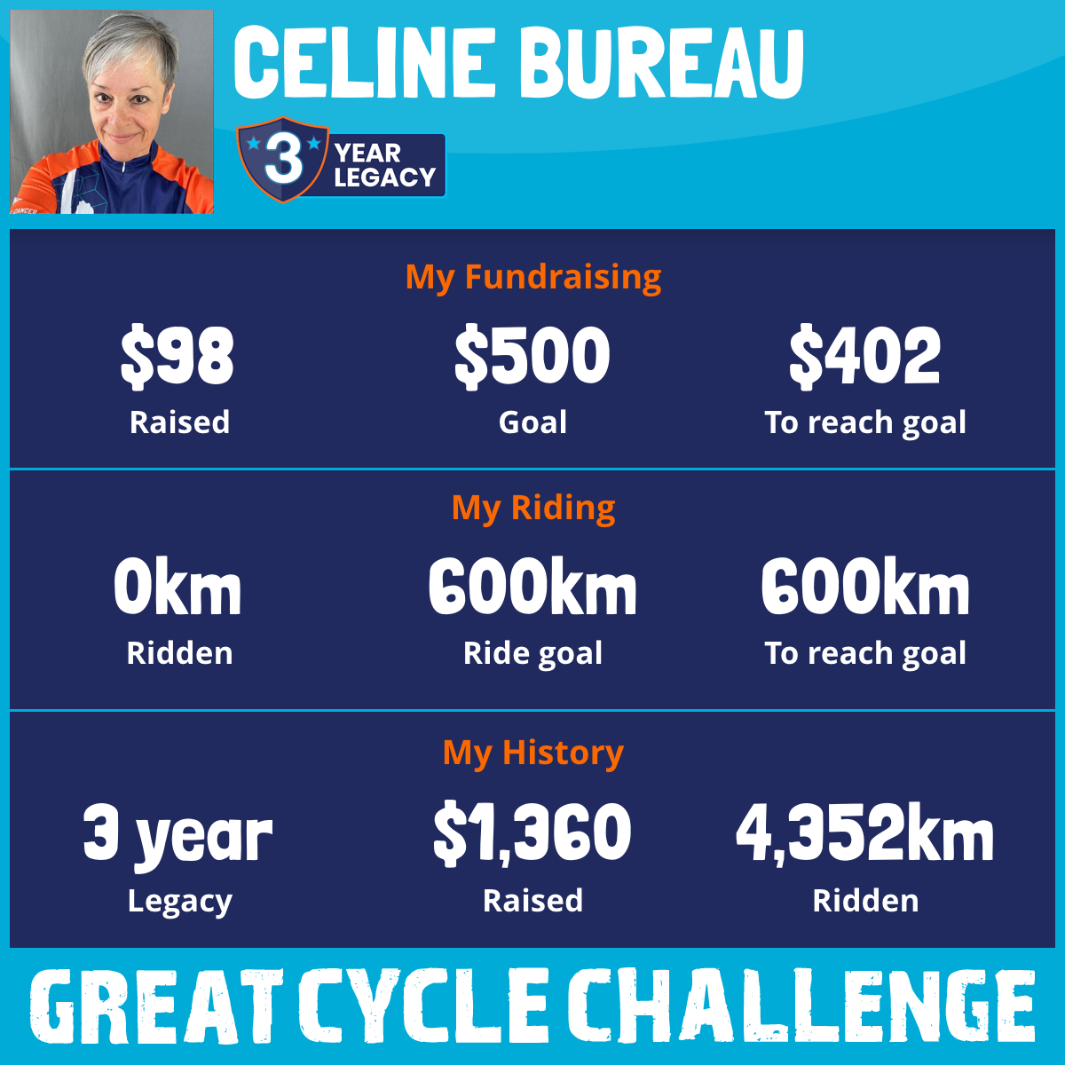 Je participe au defi Great Cycle Challenge ce mois d'aout afin d'aider les enfants atteints de cancer a continuer leur lutte.