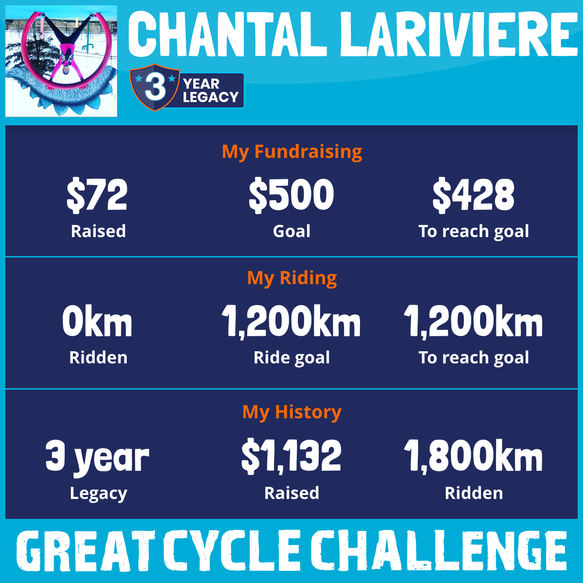 1,300 km Ridden$1,060 Raised2017