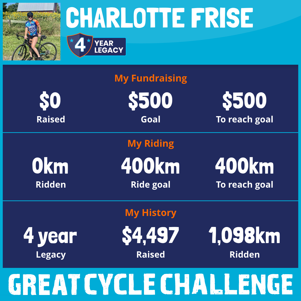 408 km Ridden$1,847 Raised2023