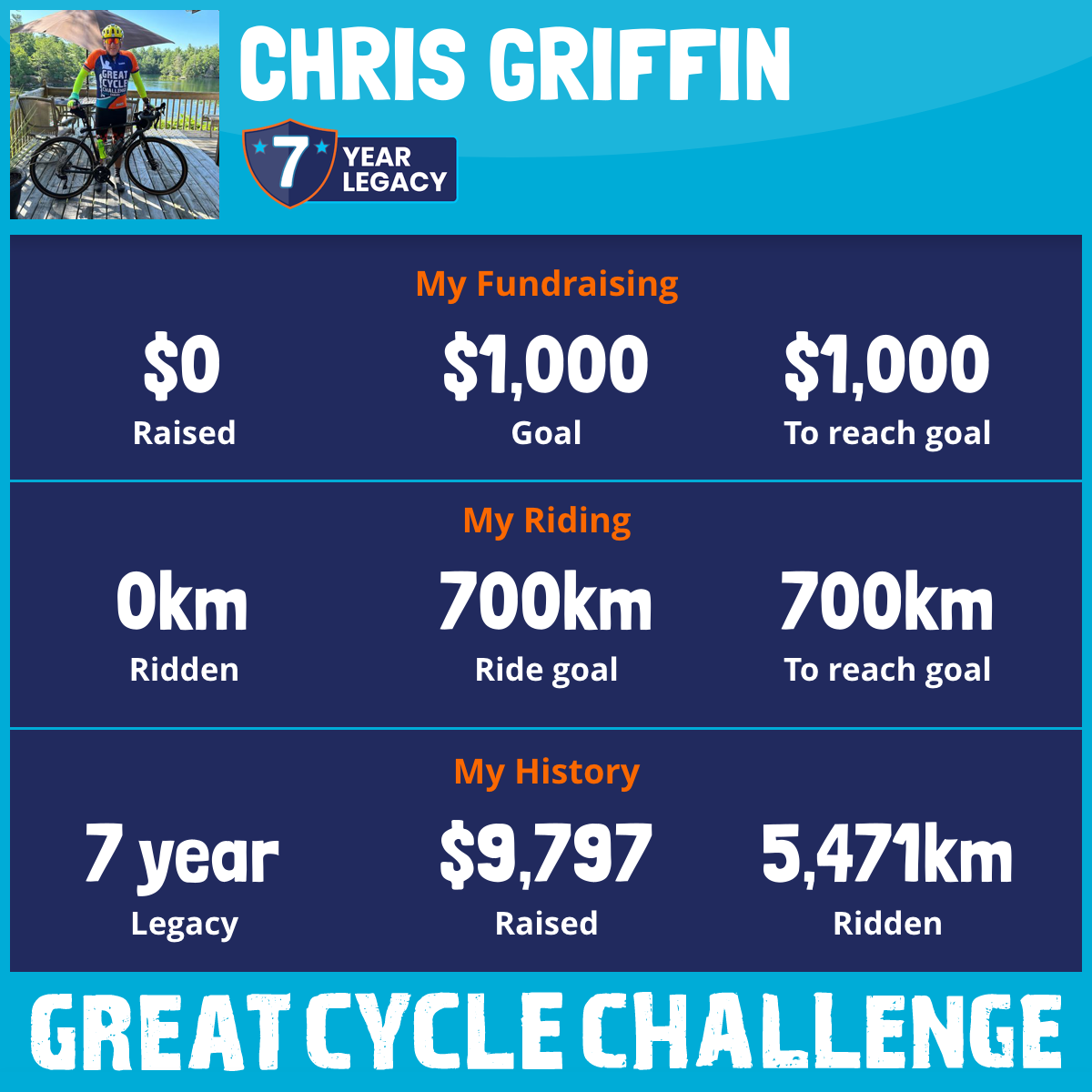 For the 7th year (in August), I am taking part in the Great Cycle Challenge to fight kids' cancer!