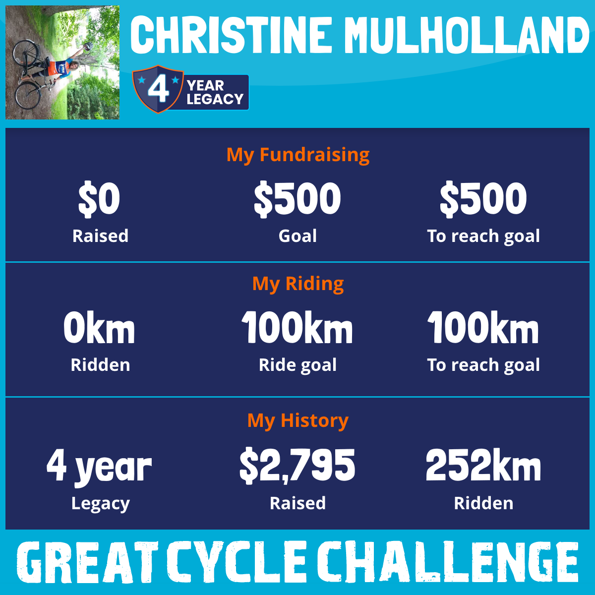 This August, I am taking part in the Great Cycle Challenge to fight kids' cancer! I'm off to a late start due to my bike being in the repair shop as well as getting a clean bill of health to ride! Now that it's all a go, I'm asking you to please support me in this worthy cause. Any donations made on August 13th will be matched! I'll be kicking starting my donation pledge sheet that day too!
