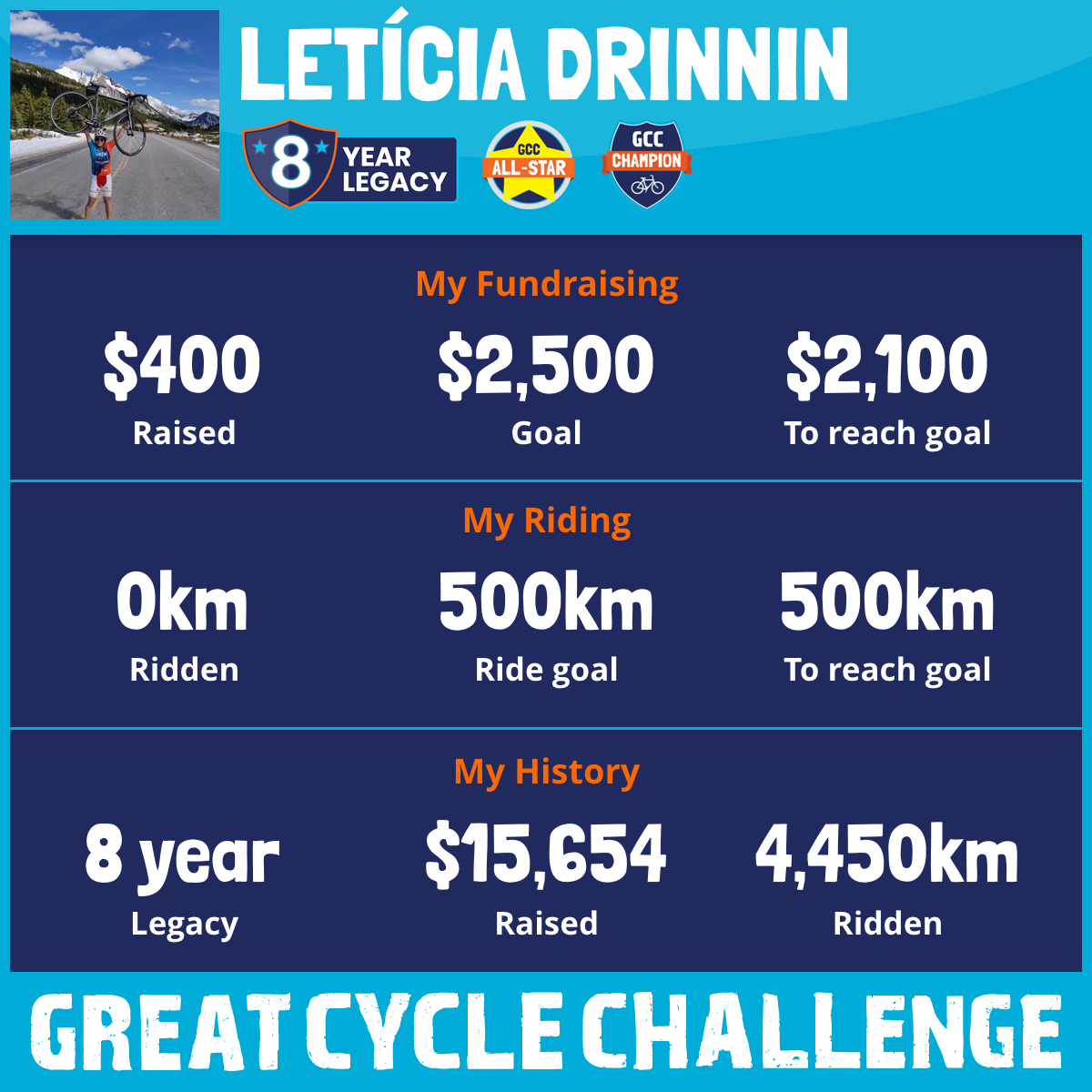 “Huge shoutout to Letícia for 8 years of riding in the #GreatCycleChallenge! 🚴‍♀️ Nearly 5,000 km pedaled to fight kids’ cancer—your dedication is truly inspiring. Thank you for being a champion for such an important cause! Keep pedaling strong—you’ve got a whole team cheering you on! 💛 #RideForACure”