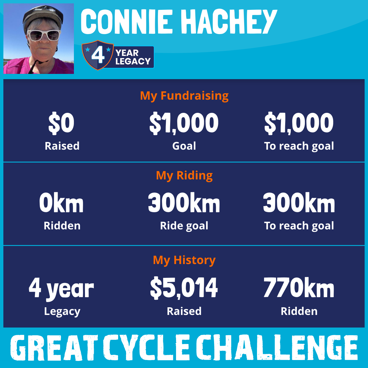 300 km Ridden$1,562 Raised2024