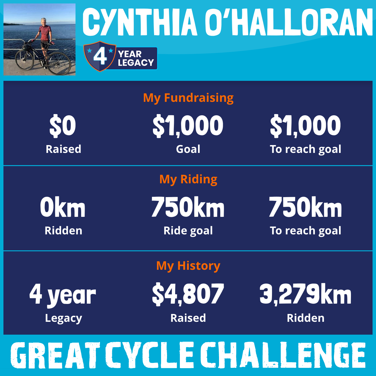 834 km Ridden$1,112 Raised2023
