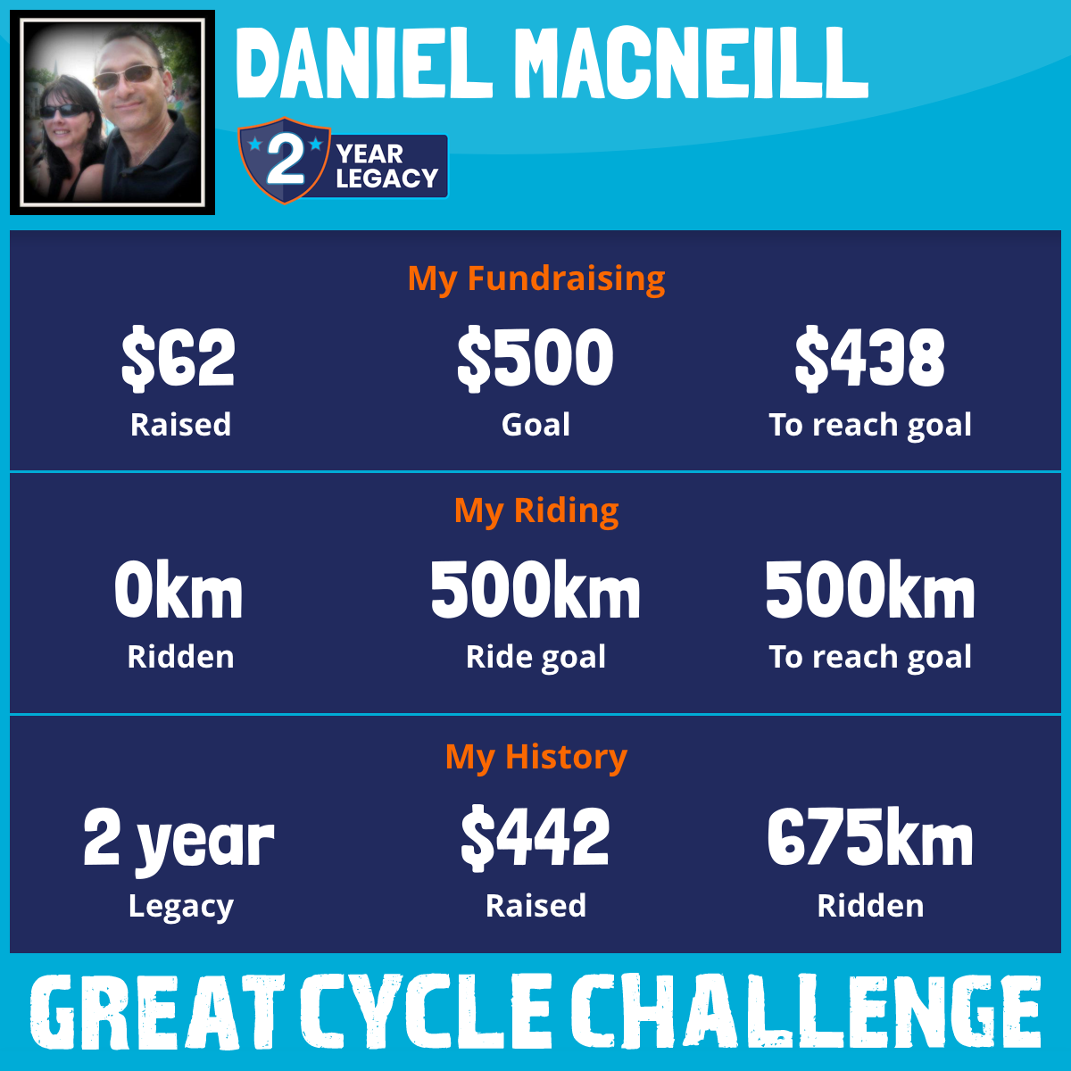 I am riding 500 km for Marina, Angie, Tammy, Gayle, Wayne, Kim, Jesse, Dave and in memory of my Father Earl and my best friend/cousin Jody and cousin Scott!