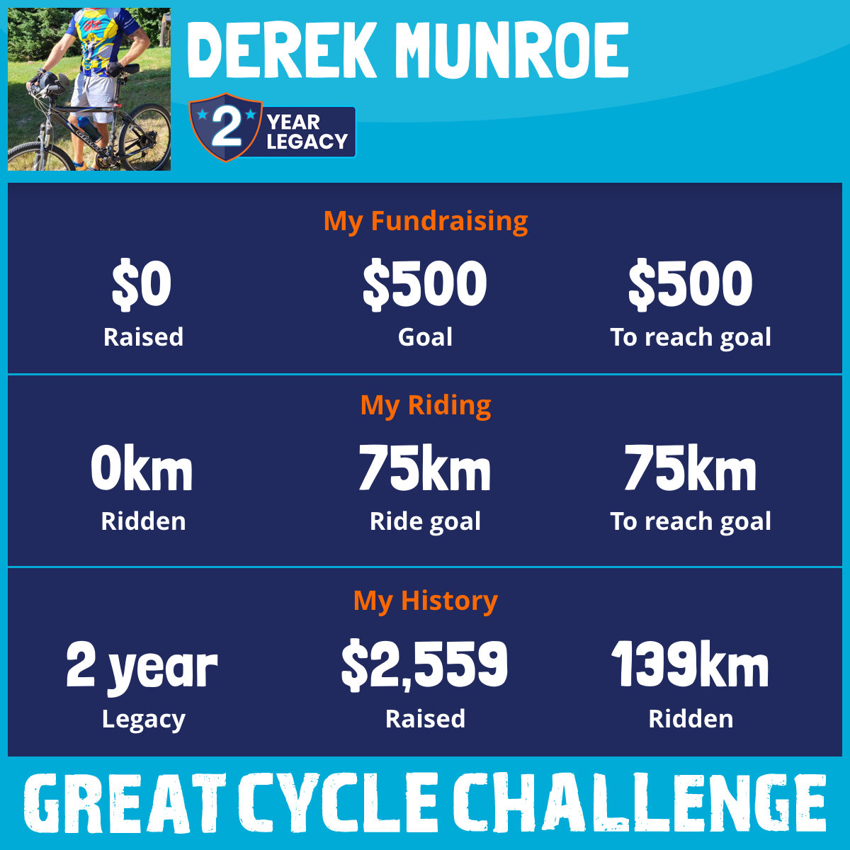 139 km Ridden$2,559 Raised2024