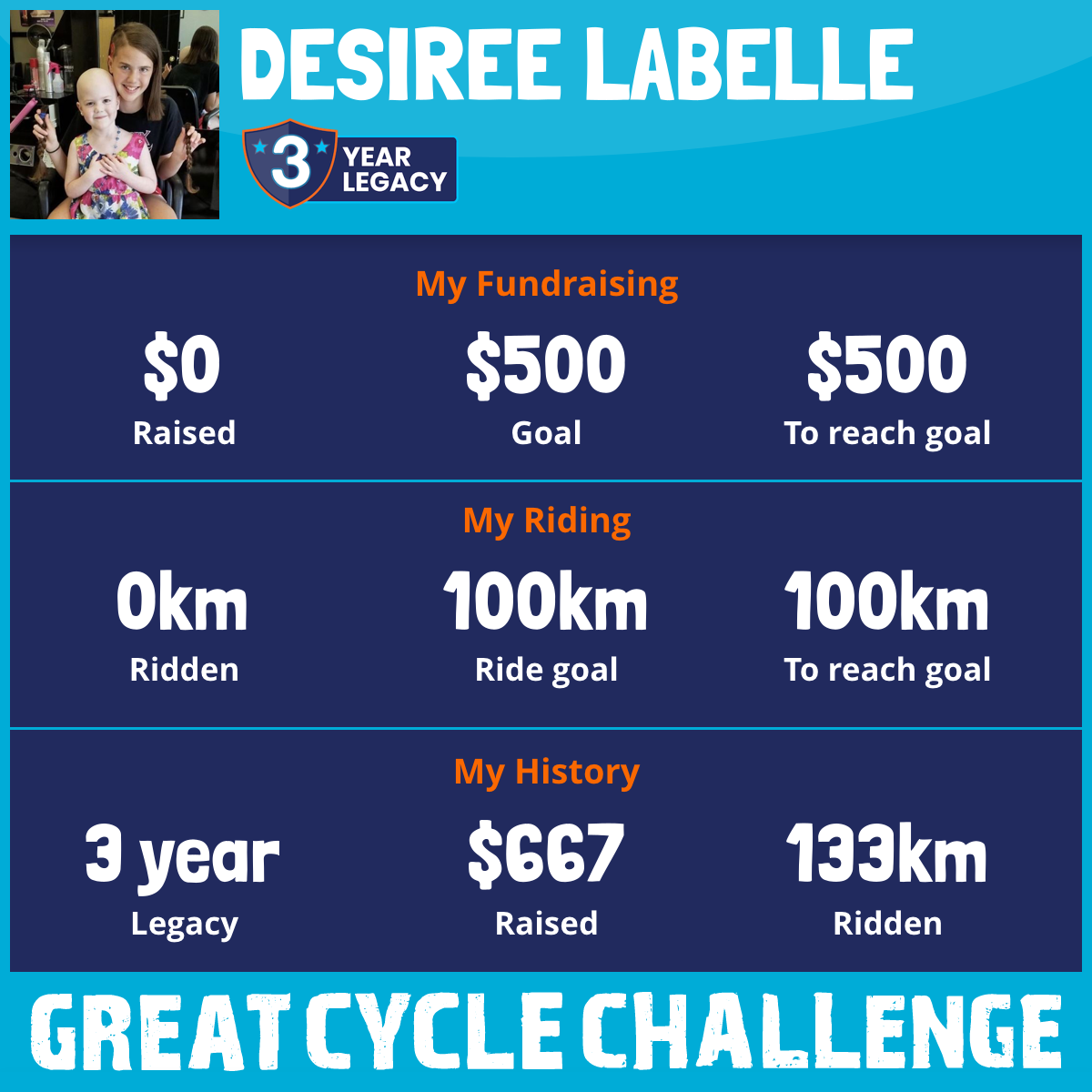 I am riding 100 km for Cassandra Labelle. Please sponsor me and support my challenge to fight kids' cancer and save little lives.