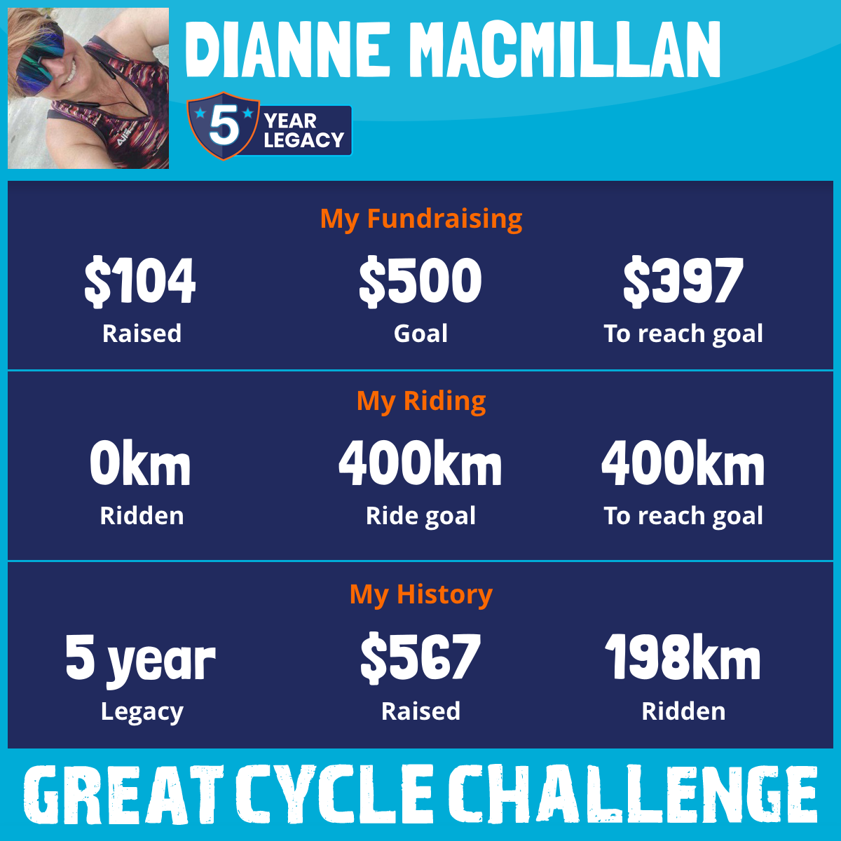 198 km Ridden$464 Raised2020