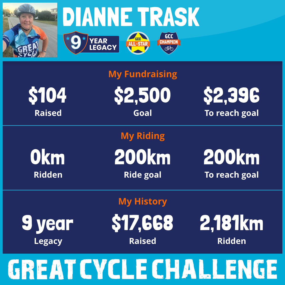 This August, I am taking part in my 9th Great Cycle Challenge to fight kids' cancer!