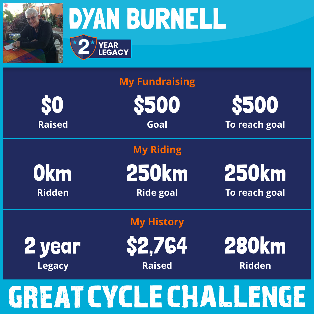 280 km Ridden$2,764 Raised2025