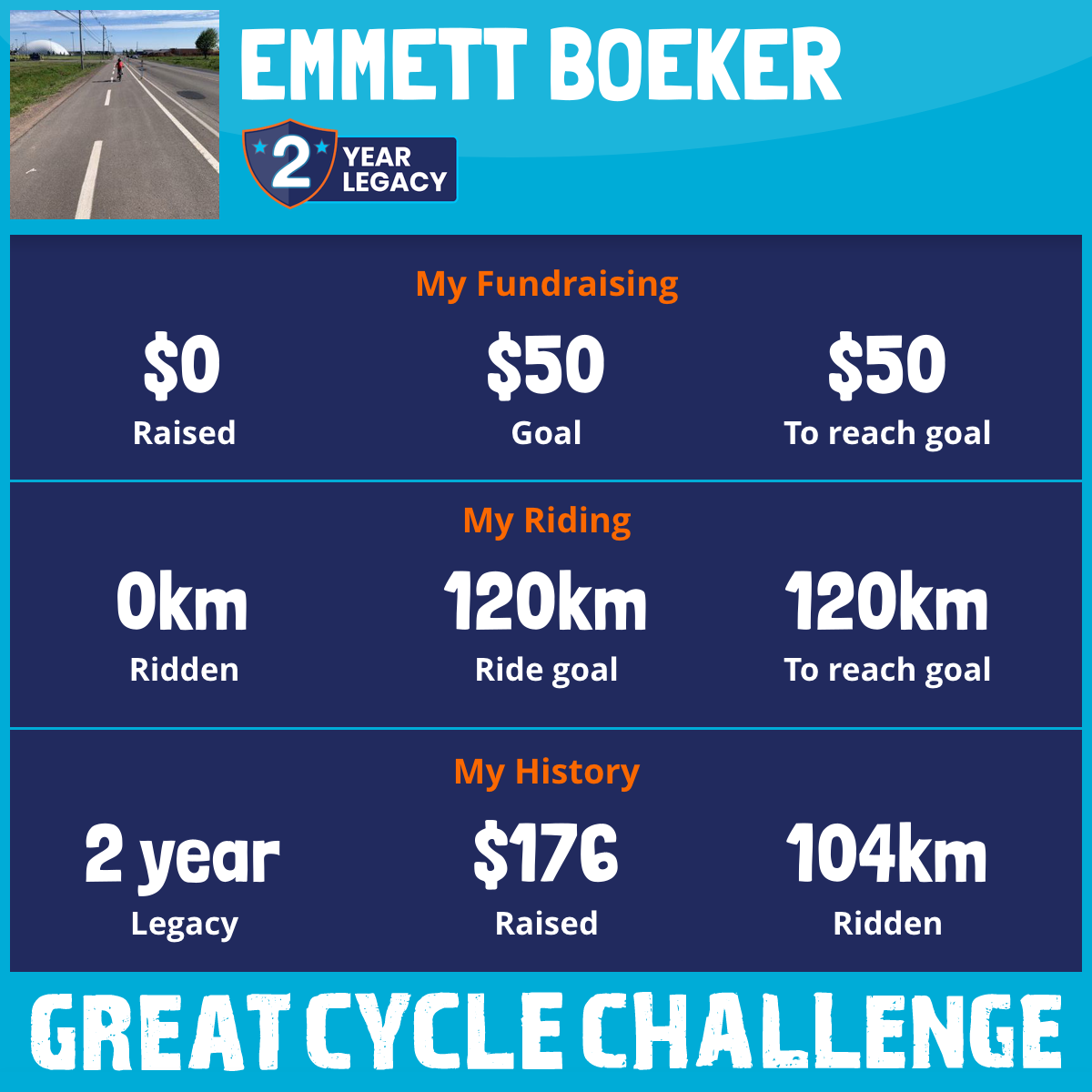 I am riding 120 km in memory of Camden. Please sponsor me and support my challenge to fight kids' cancer and save little lives.