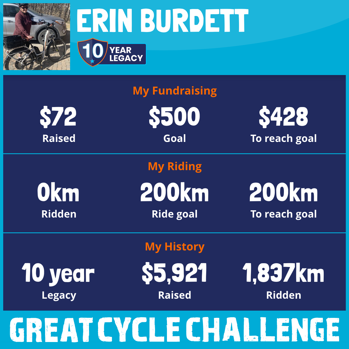 I am riding 450km in memory of my loved one, Audrey Burdett. Please sponsor me and support my challenge to fight kids' cancer and save little lives.