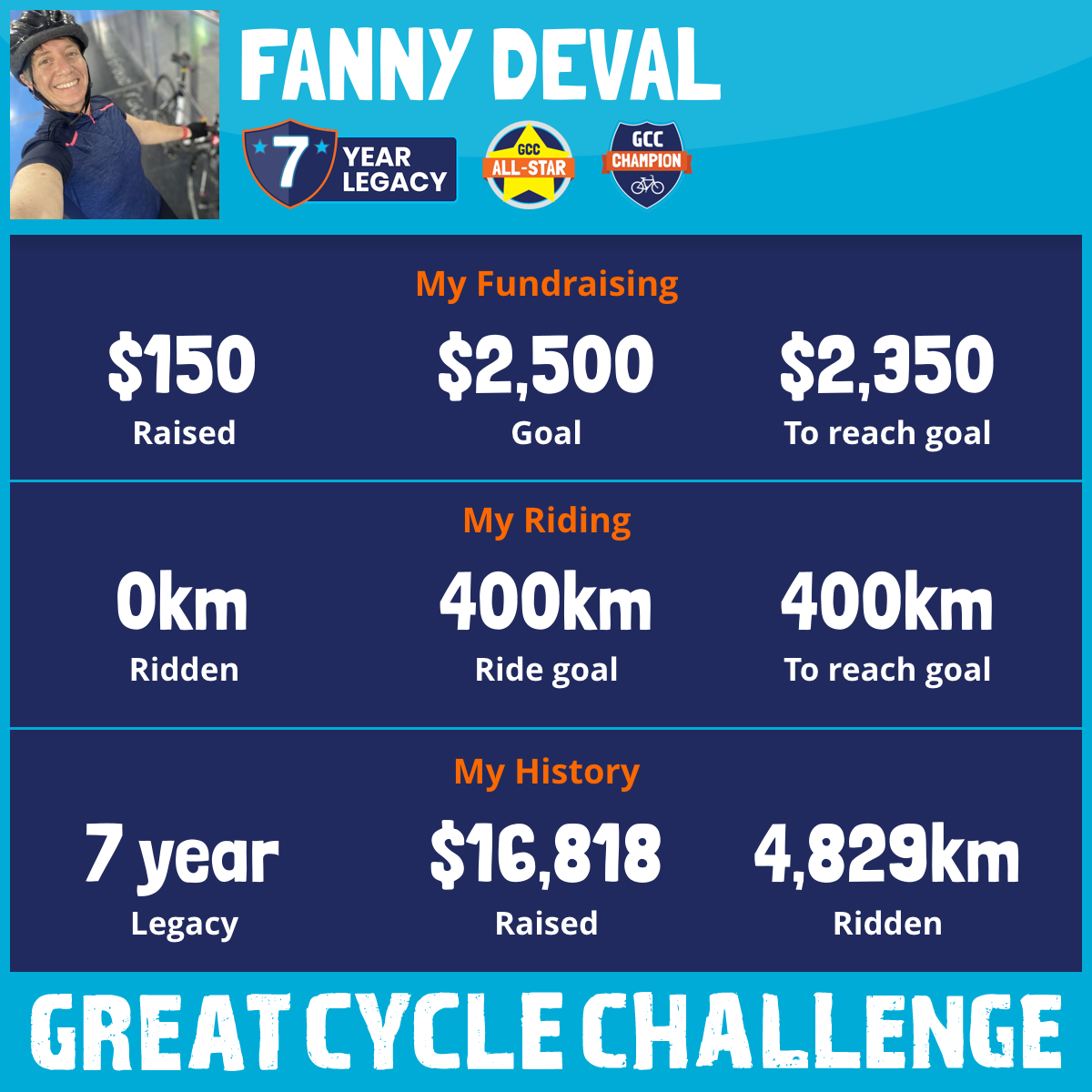 From 2017 to 2022 I rode 4,829km and raised $16,668 to give kids fighting cancer a better life!