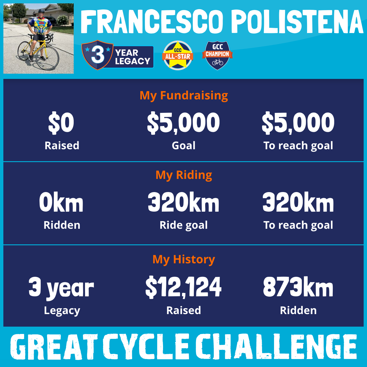 320 km Ridden$5,074 Raised2026