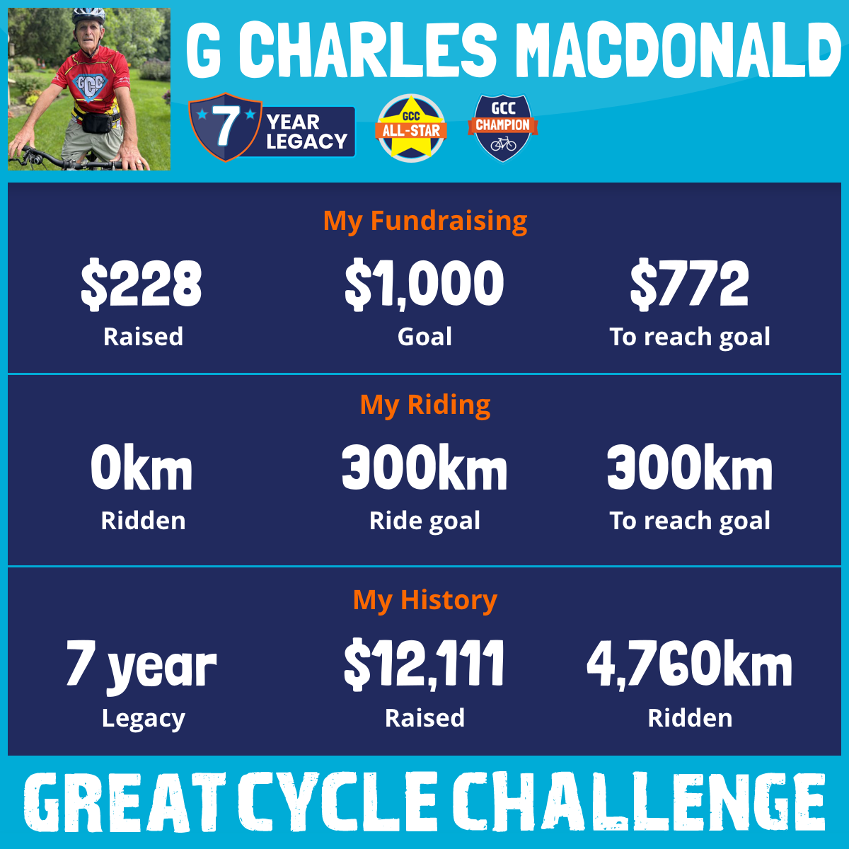 1,067 km Ridden$3,280 Raised2023