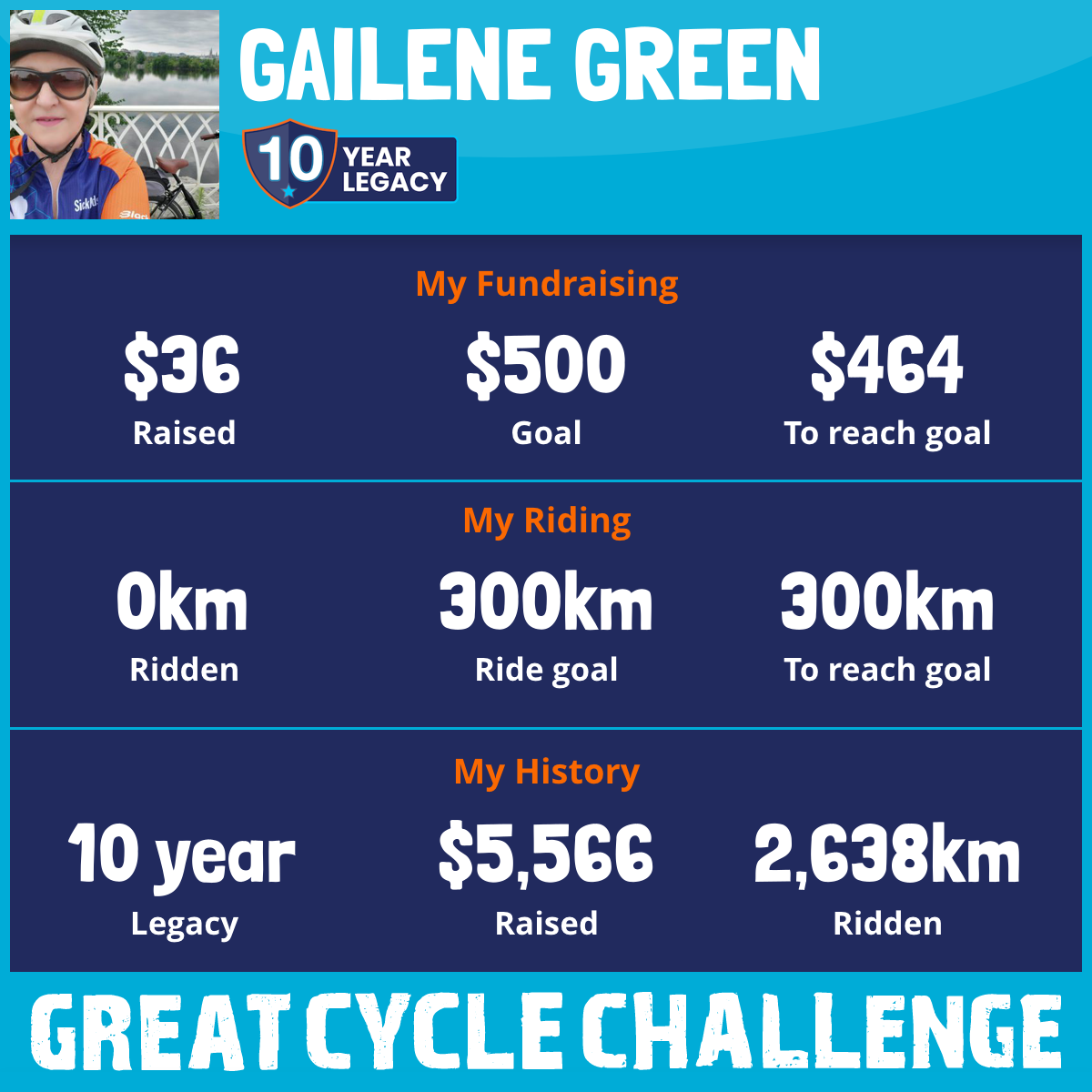 This August, I am taking part in the Great Cycle Challenge Canada to fight kids' cancer! This is my 10th year!!! It's not going to be easy with 2 new knees but I'm going to give all my effort to do it because the kids are depending on me.