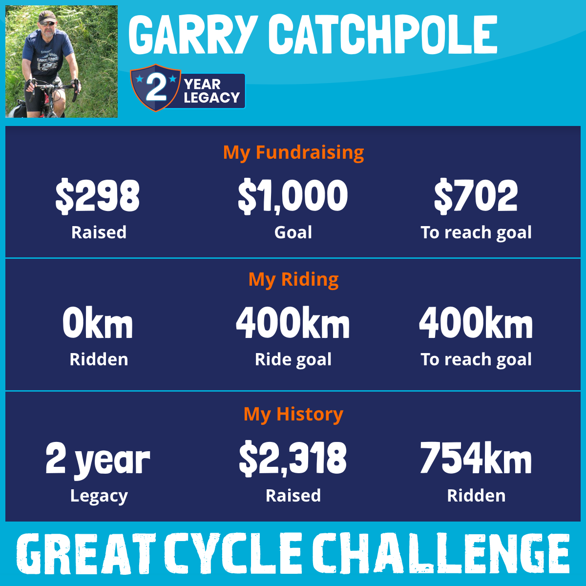 404 km Ridden$1,380 Raised2025