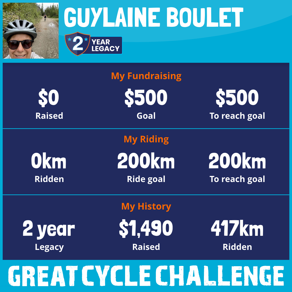 417 km Ridden$1,490 Raised2023