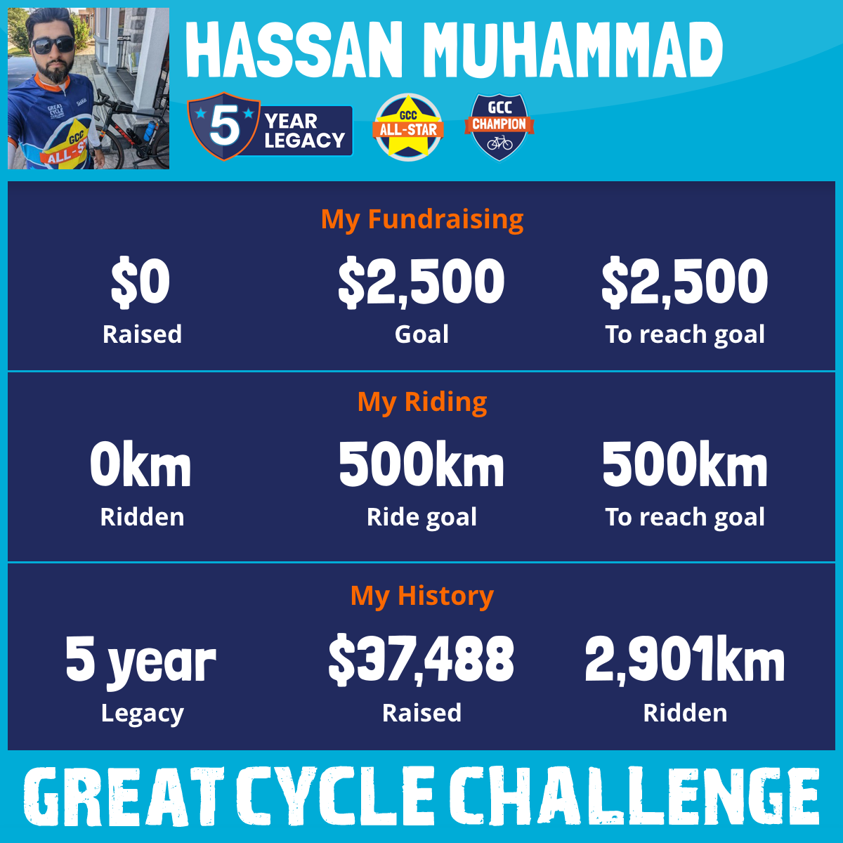 I lost a close friends 2 yr old daughter to cancer in 2020, and have started riding with the GCC since then. We need to do more to keep children from fighting against this and being able to do what they are supposed to do, PLAY! This August, I am taking part in the Great Cycle Challenge to fight kids' cancer!