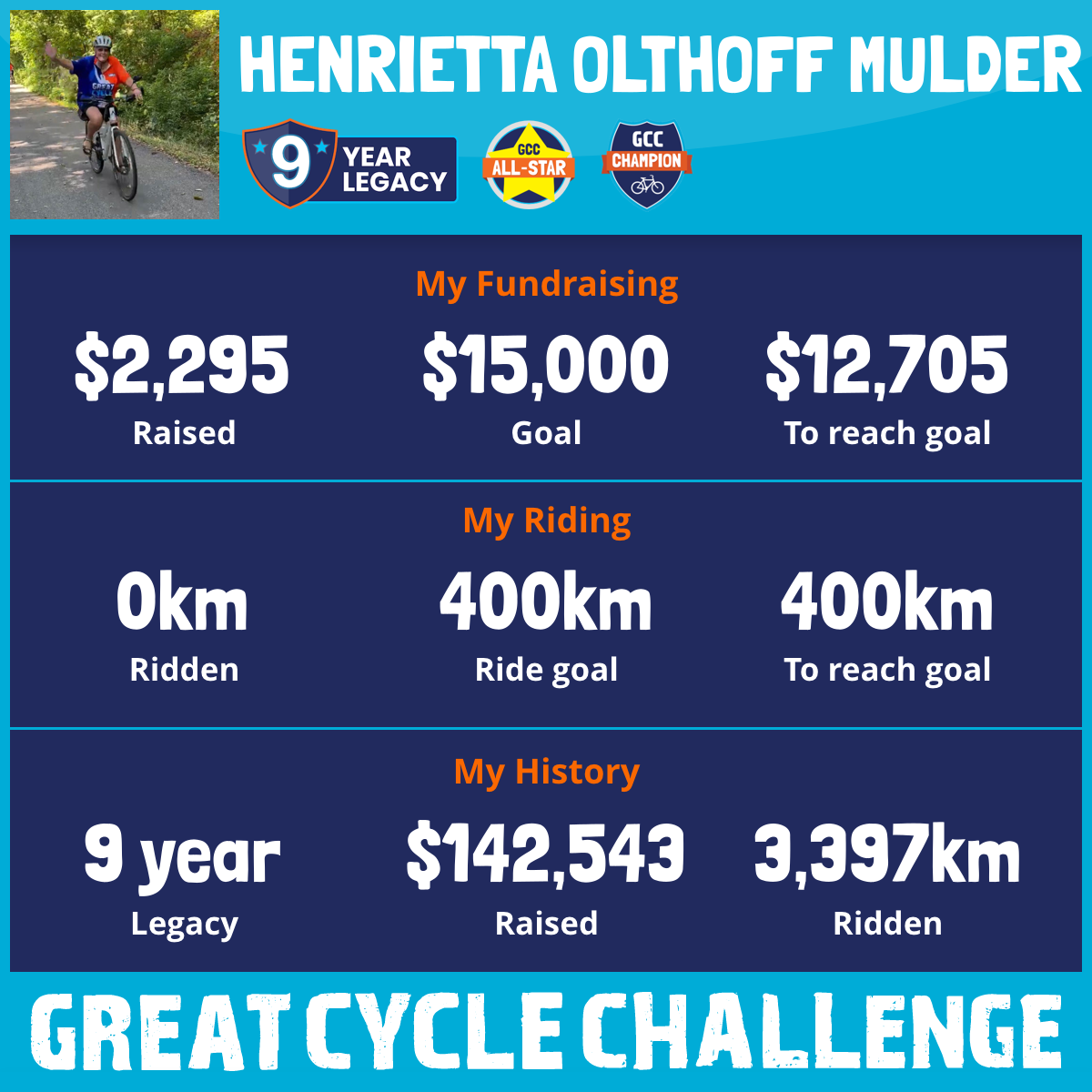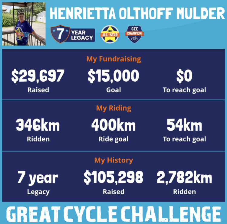 This year I am taking part in the Great Cycle Challenge to fight kids' cancer again!