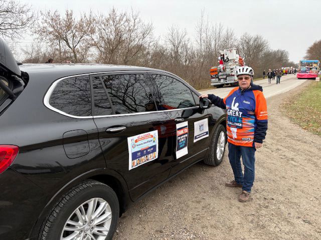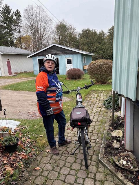 15 Nov 2025Today I was able to participate in the Ingersoll Santa Claus parade! The weather (rain) held off until the end of the parade fortunately, and the temperature was conducive to this senior being on her bicycle! With the help of two high school students (who each got 3 volunteer hours) and one mom, we handed out 300 candy canes, 5 pounds of peppermint pinwheel candies and 300 glow sticks, donated by a couple of town stores, to the people lining the parade route! Just my way of thanking the many people who support me all year long in raising funds to fight childhood cancer!