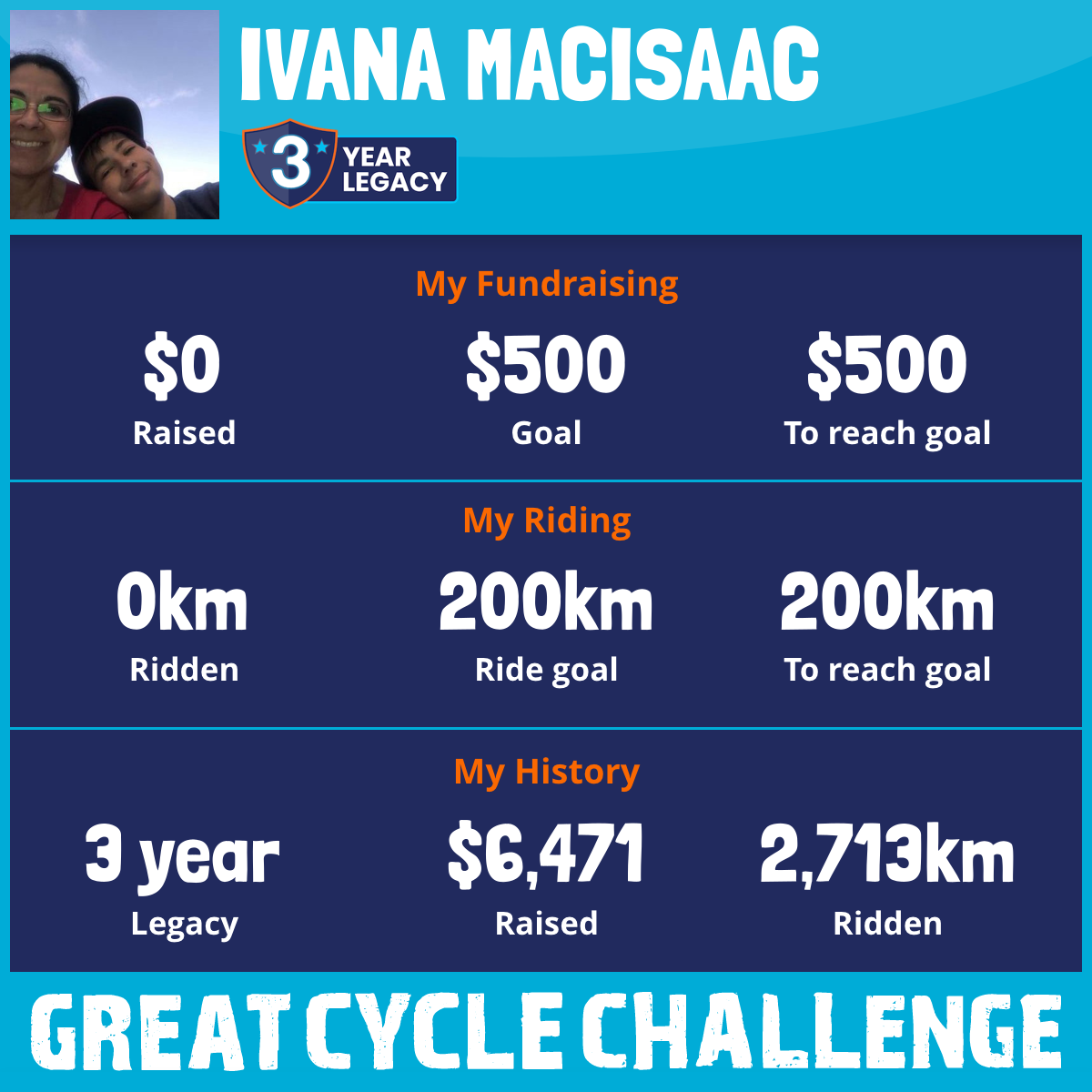 I am dedicating my challenge to my wonderful son, Lucas, who in 2020 at the age of 15 passed away after an 8 year battle with medulloblastoma, a pediatric brain tumour. This August, I am taking part in the Great Cycle Challenge to fight kids' cancer!